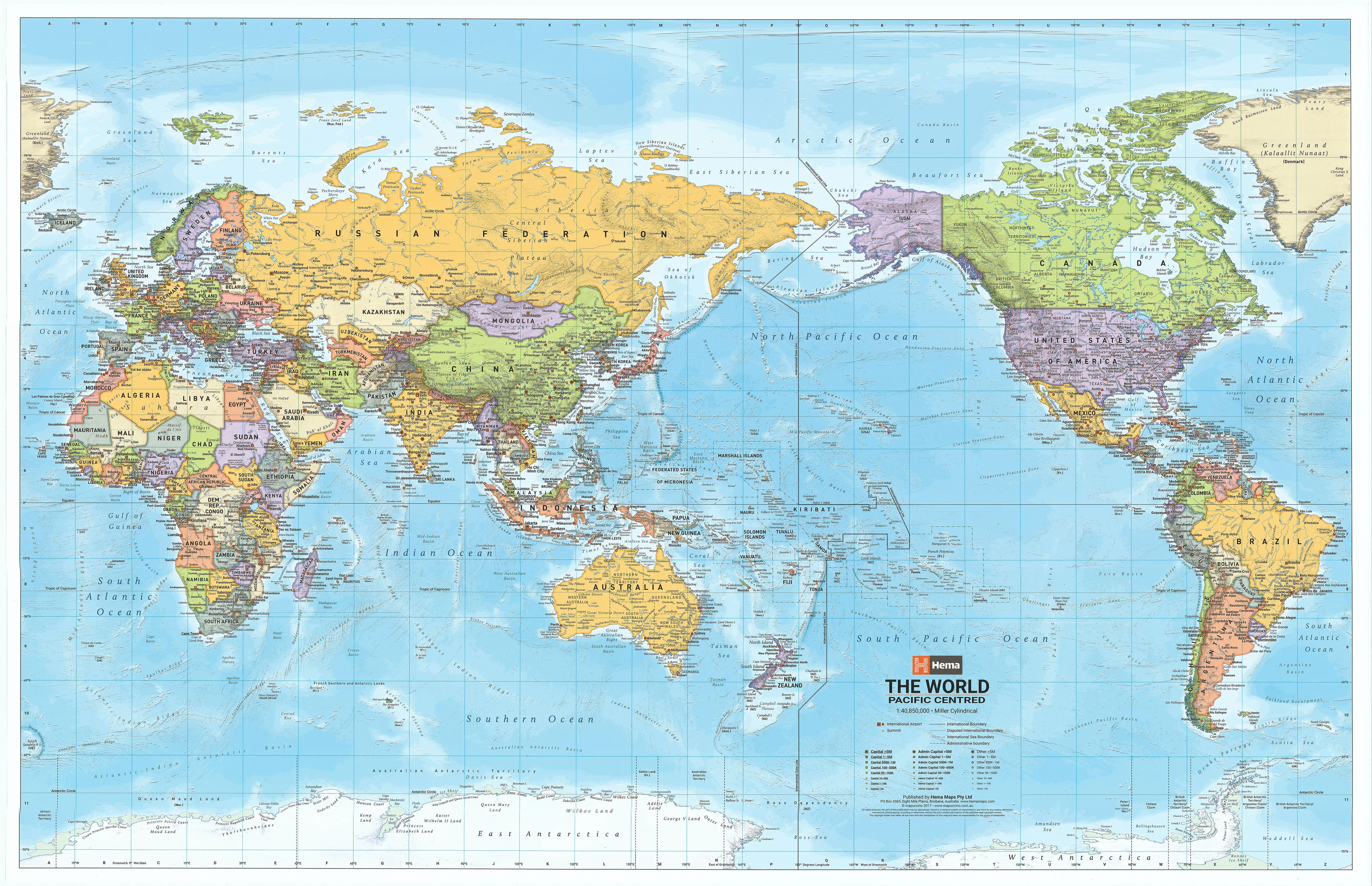 World Political Mega Map (Pacific Centred) Buy Hema World Map