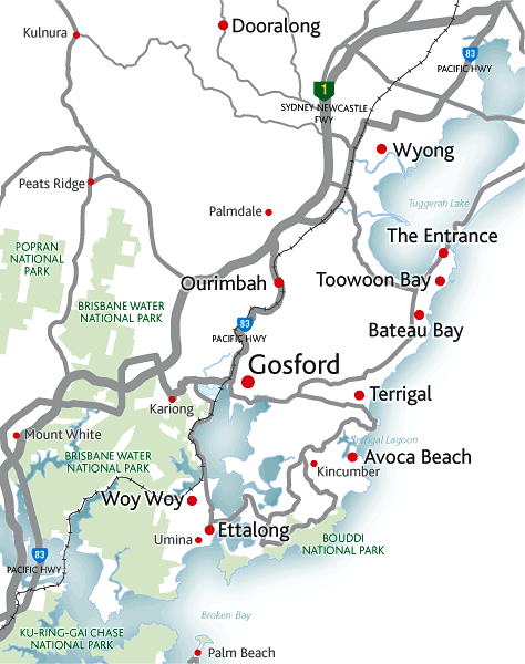 Central Coast Map, NSW Beaches, National Parks, Towns